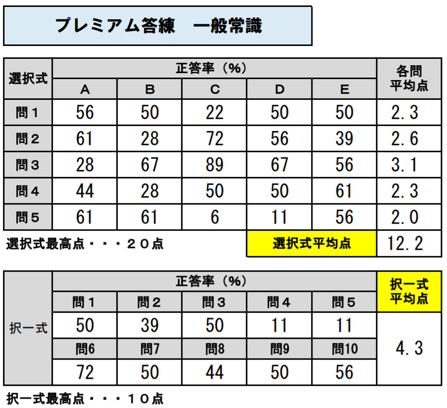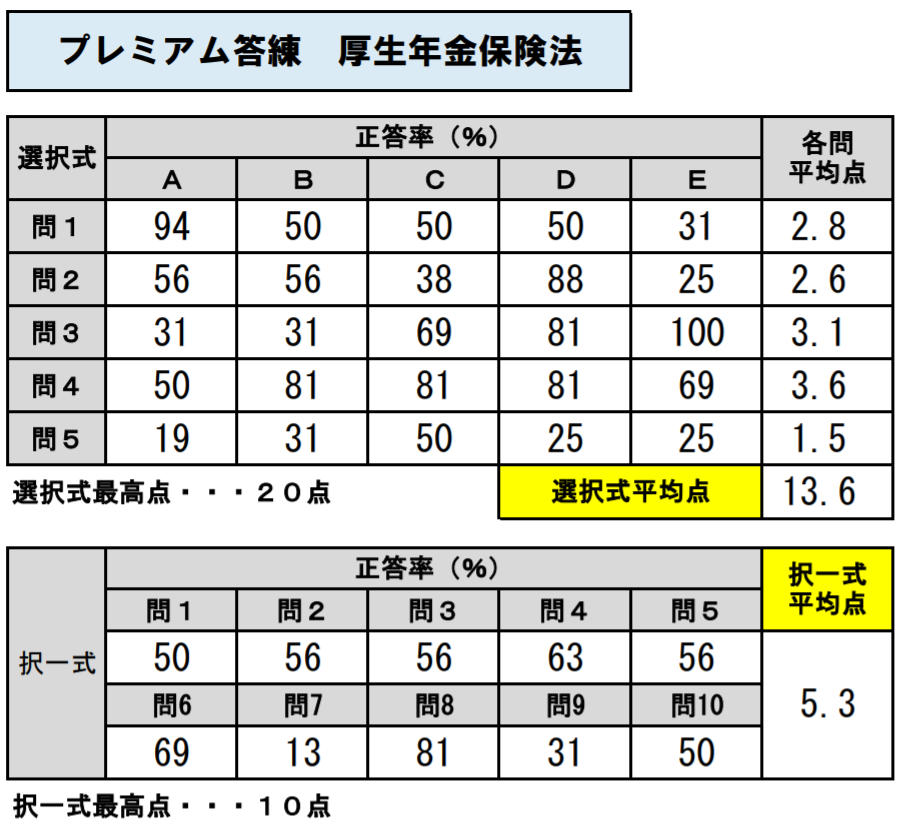 なお、これ以前の第1回から第4回までのプレミアム答練の正答率は、LIVE講義が自粛であったため、正答率の集計ができませんので、ご了承ください。