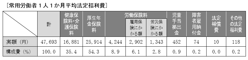 D 「法定福利費」の内訳とその占める割合は、「厚生年金保険料」54.3%と最も高く、次いで「健康保険料・介護保険料」35.4%、「労働保険料」8.9%などとなっている。