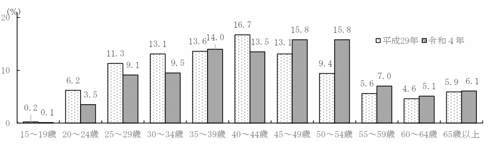 ② 次いで、35~39歳と40~44歳が約13~14%となっている。