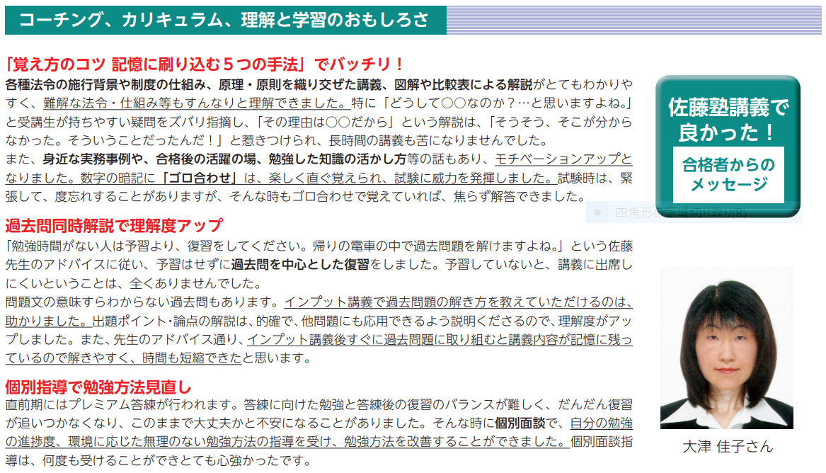 佐藤塾のパックコース(フルパック☆プラス、フルパック、レクチャーパック等の「パック」と付いたコース)をご利用いただくと、希望に応じて個別相談を実施しています。
