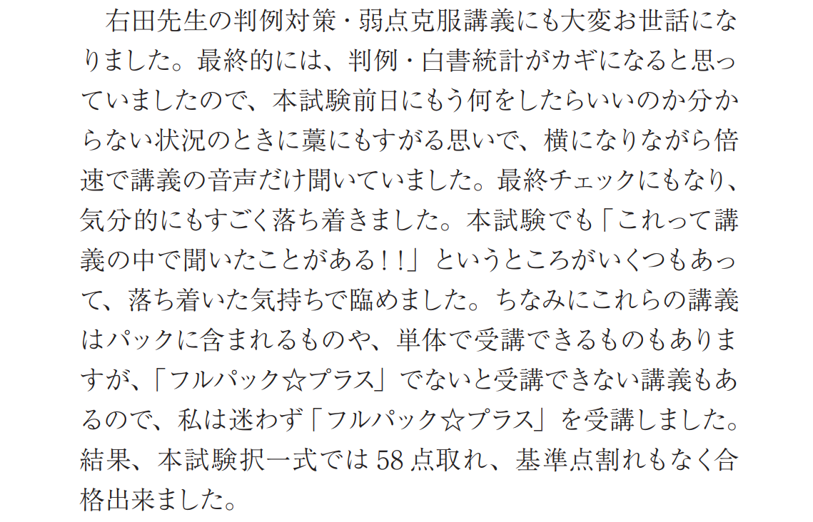 合格者の方からも、パンフレットで次のようなコメントをいただいています。