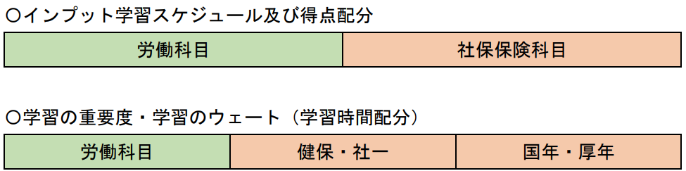 第一、学習の配点やインプット講義のコマ数から鑑みると、労働科目と社会保険科目はおおよそ1対1であり、50%・50%となりますが、学習のウェートや重要度からすると、約3分の2を社会保険科目が占めるといってもいいくらいです。